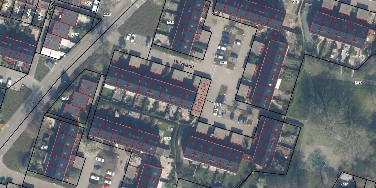 Het perceel waarop Duiveland 38 staat heeft een oppervlakte van 5318 m². Dit is een zeer groot perceel. De perceeloppervlakte wordt geregistreerd door het Kadaster. Gedetailleerde informatie over de maten van dit perceel kunt u vinden in het rapport Kadastrale kaart met maatvoering van Duiveland 38.