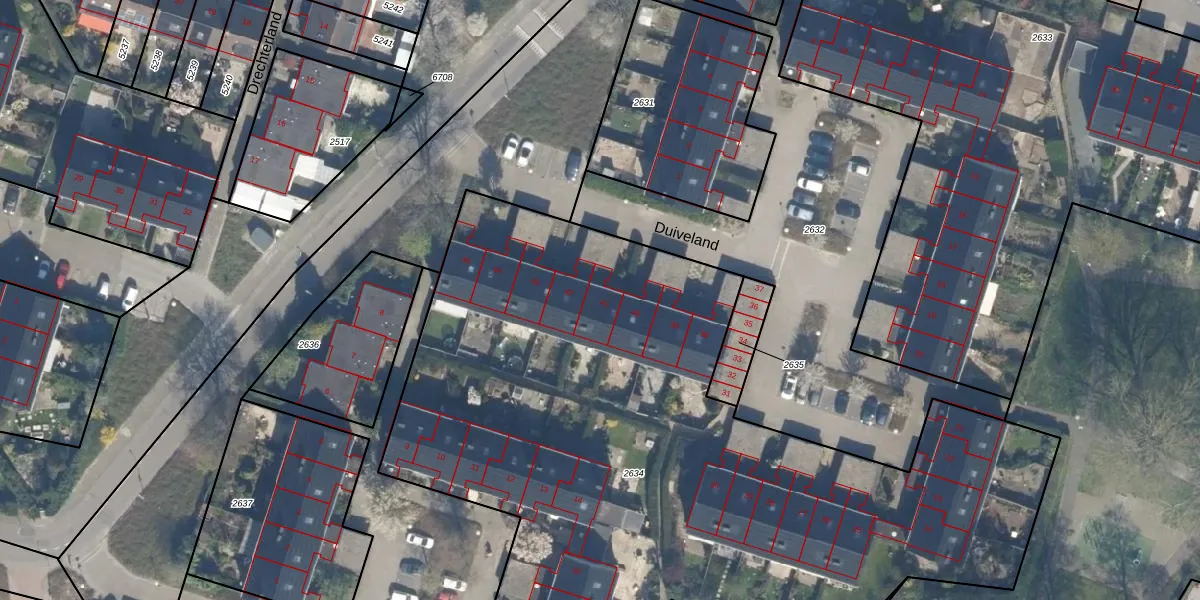 Het perceel waarop Duiveland 41 staat heeft een oppervlakte van 5318 m². Dit is een zeer groot perceel. De perceeloppervlakte wordt geregistreerd door het Kadaster. Gedetailleerde informatie over de maten van dit perceel kunt u vinden in het rapport Kadastrale kaart met maatvoering van Duiveland 41.