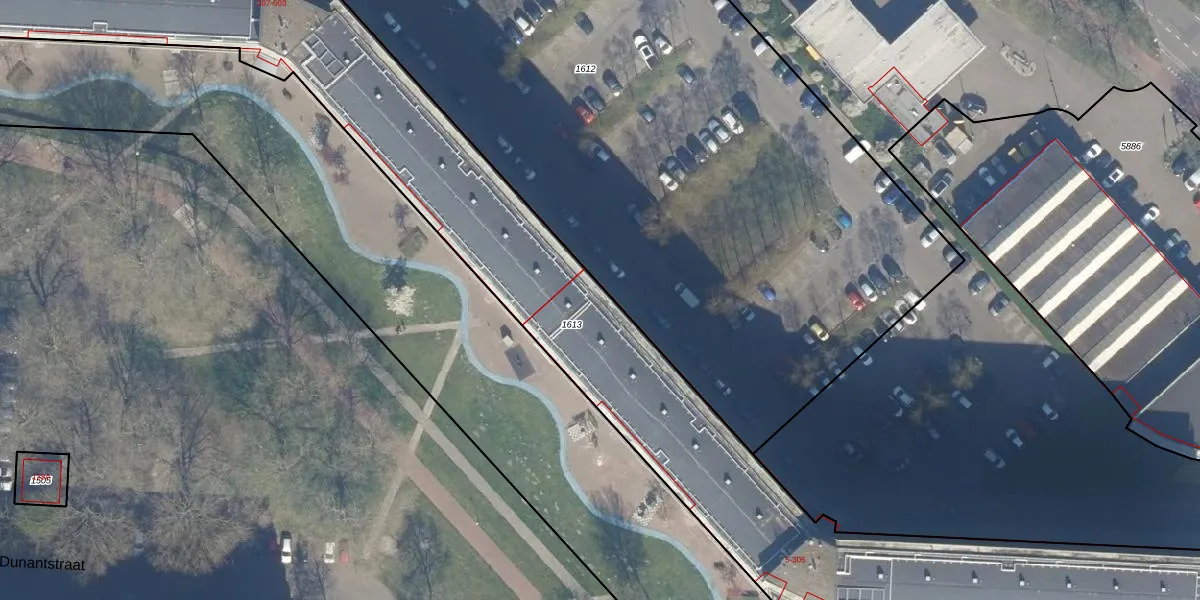 Het perceel waarop Dunantstraat 33 staat heeft een oppervlakte van 3600 m². Dit is een zeer groot perceel. De perceeloppervlakte wordt geregistreerd door het Kadaster. Gedetailleerde informatie over de maten van dit perceel kunt u vinden in het rapport Kadastrale kaart met maatvoering van Dunantstraat 33.