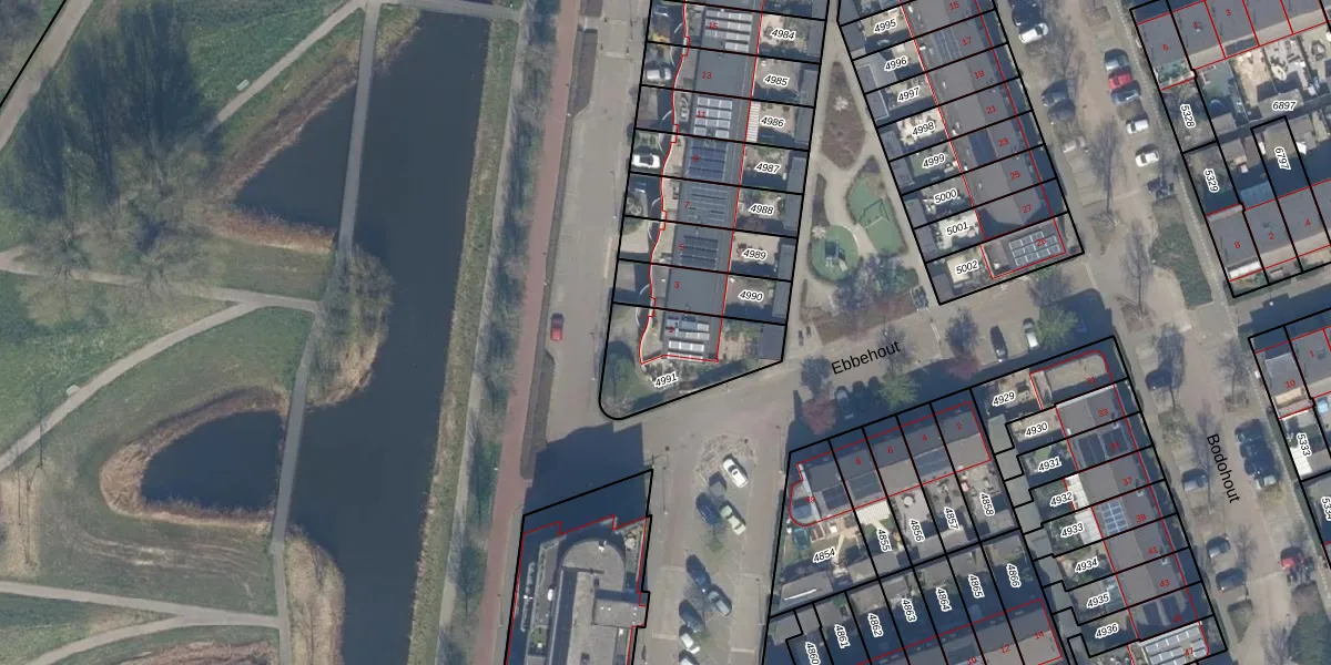 Gebruik de zoekbalk of klik op een perceel voor informatie over de adressen binnen dit perceel.