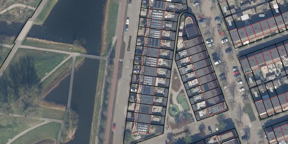 Ebbehout 13 is gelegen op kadastraal perceel ZTM00E4985. Deze kadastrale aanduiding is uniek en wordt gebruikt door het Kadaster om eigendomsrechten en andere zakelijke rechten vast te leggen. Het perceel maakt onderdeel uit van de kadastrale gemeente Zoetermeer.