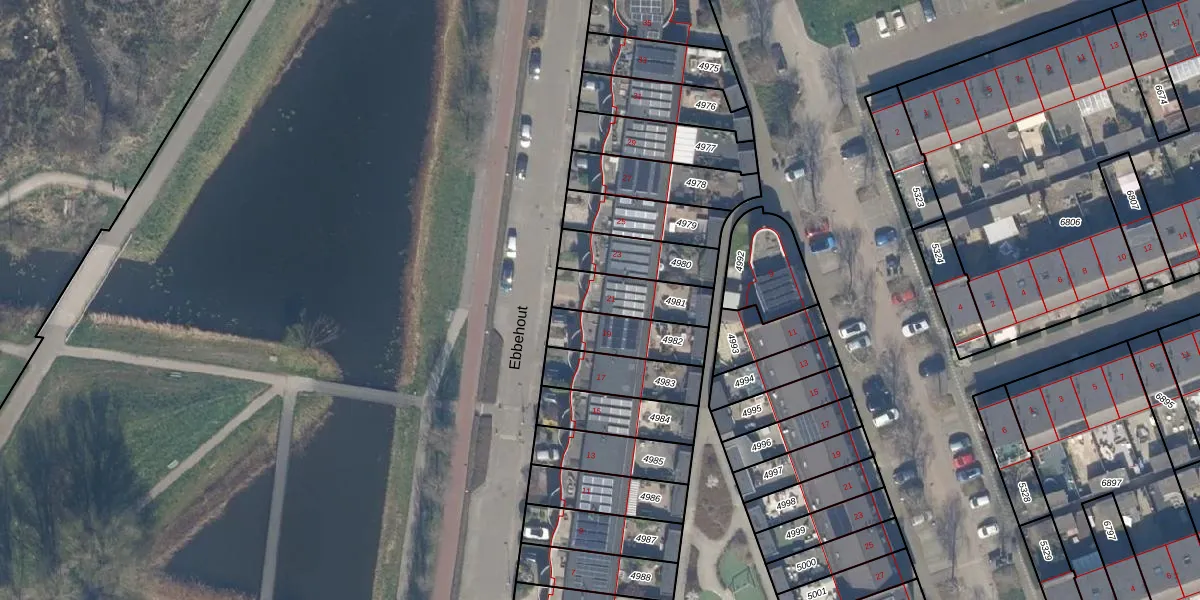 Het perceel waarop Ebbehout 21 staat heeft een oppervlakte van 174 m². Dit is een middelgroot perceel. De perceeloppervlakte wordt geregistreerd door het Kadaster. Gedetailleerde informatie over de maten van dit perceel kunt u vinden in het rapport Kadastrale kaart met maatvoering van Ebbehout 21.