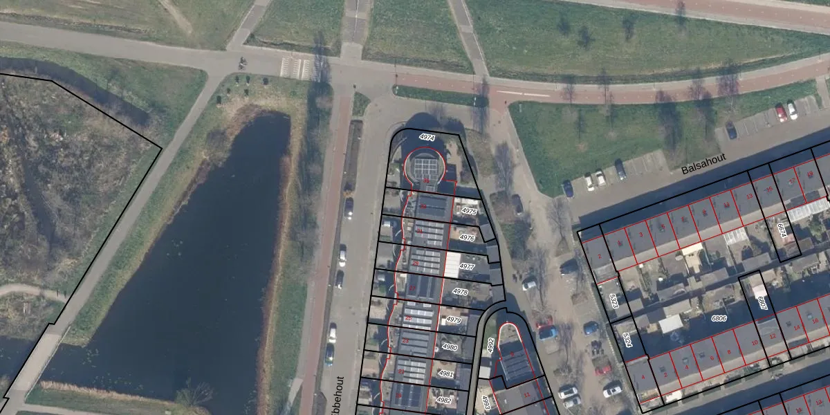 Gebruik de zoekbalk of klik op een perceel voor informatie over de adressen binnen dit perceel.