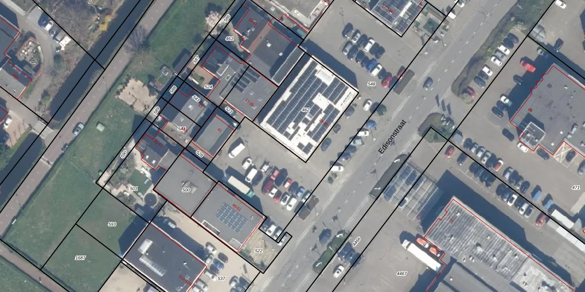 Het perceel waarop Edisonstraat 35 staat heeft een oppervlakte van 690 m². Dit is een groot perceel. De perceeloppervlakte wordt geregistreerd door het Kadaster. Gedetailleerde informatie over de maten van dit perceel kunt u vinden in het rapport Kadastrale kaart met maatvoering van Edisonstraat 35.