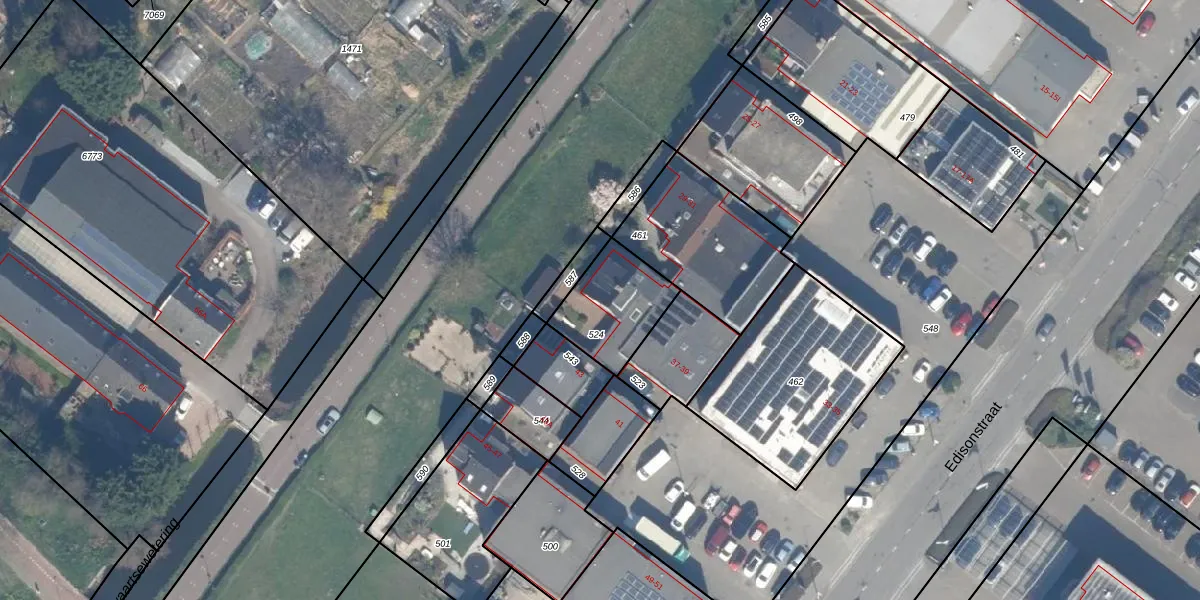 Edisonstraat 39 is gelegen op kadastraal perceel ZWD01F524. Deze kadastrale aanduiding is uniek en wordt gebruikt door het Kadaster om eigendomsrechten en andere zakelijke rechten vast te leggen. Het perceel maakt onderdeel uit van de kadastrale gemeente Zegwaard.