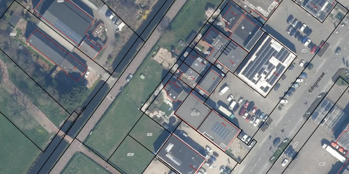 Edisonstraat 45 is gelegen op kadastraal perceel ZWD01F501. Deze kadastrale aanduiding is uniek en wordt gebruikt door het Kadaster om eigendomsrechten en andere zakelijke rechten vast te leggen. Het perceel maakt onderdeel uit van de kadastrale gemeente Zegwaard.