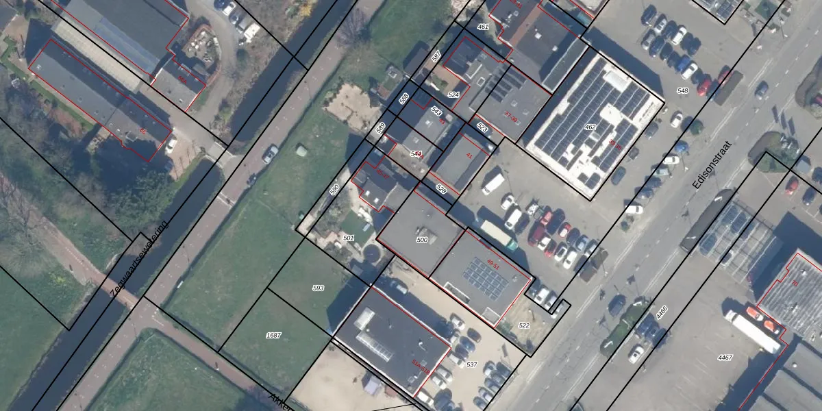 Edisonstraat 47 is gelegen op kadastraal perceel ZWD01F500. Deze kadastrale aanduiding is uniek en wordt gebruikt door het Kadaster om eigendomsrechten en andere zakelijke rechten vast te leggen. Het perceel maakt onderdeel uit van de kadastrale gemeente Zegwaard.