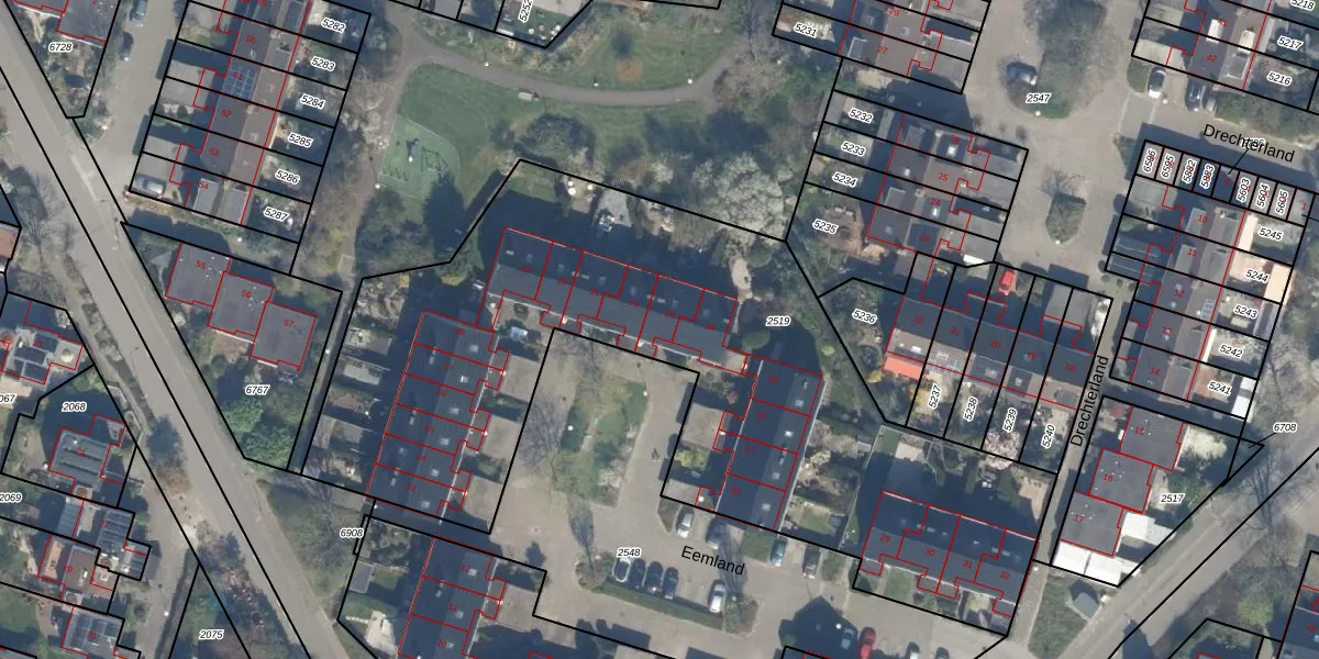 Het perceel waarop Eemland 23 staat heeft een oppervlakte van 3578 m². Dit is een zeer groot perceel. De perceeloppervlakte wordt geregistreerd door het Kadaster. Gedetailleerde informatie over de maten van dit perceel kunt u vinden in het rapport Kadastrale kaart met maatvoering van Eemland 23.