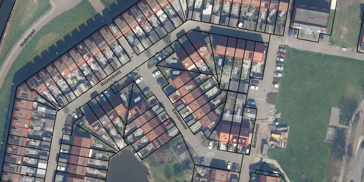 Gebruik de zoekbalk of klik op een perceel voor informatie over de adressen binnen dit perceel.