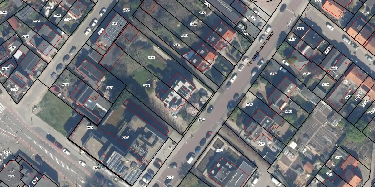 Het perceel waarop Eerste Stationsstraat 49 staat heeft een oppervlakte van 768 m². Dit is een groot perceel. De perceeloppervlakte wordt geregistreerd door het Kadaster. Gedetailleerde informatie over de maten van dit perceel kunt u vinden in het rapport Kadastrale kaart met maatvoering van Eerste Stationsstraat 49.