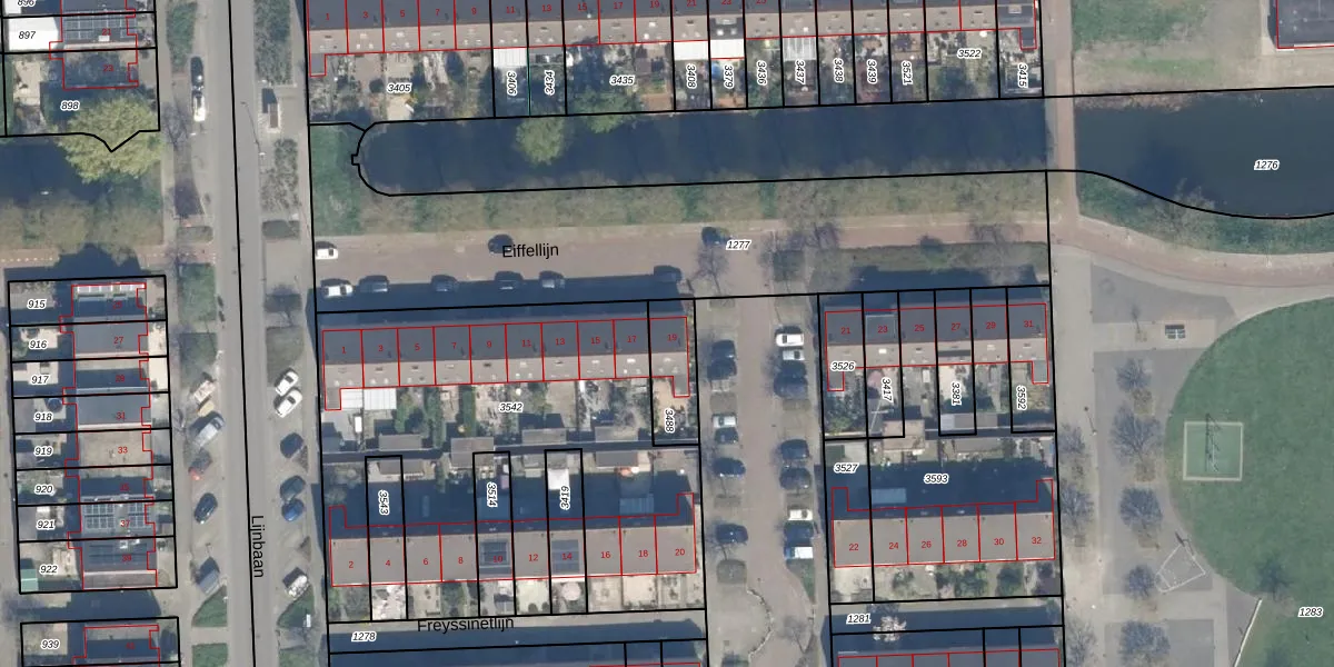 Het perceel waarop Eiffellijn 19 staat heeft een oppervlakte van 150 m². Dit is een middelgroot perceel. De perceeloppervlakte wordt geregistreerd door het Kadaster. Gedetailleerde informatie over de maten van dit perceel kunt u vinden in het rapport Kadastrale kaart met maatvoering van Eiffellijn 19.