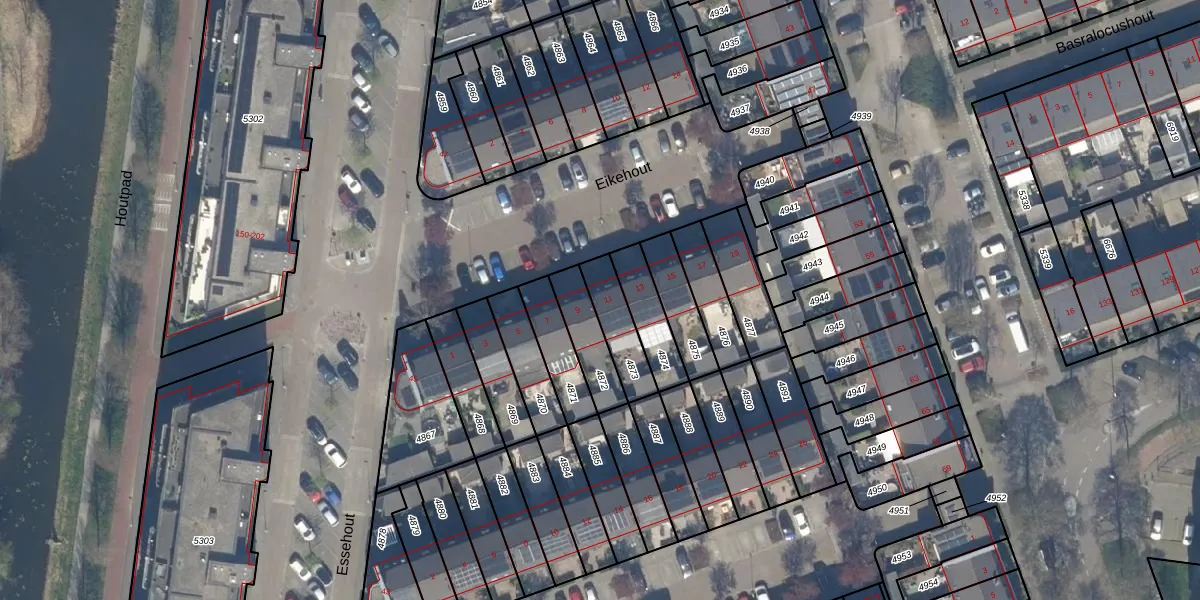 Gebruik de zoekbalk of klik op een perceel voor informatie over de adressen binnen dit perceel.