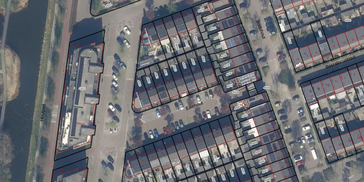 Gebruik de zoekbalk of klik op een perceel voor informatie over de adressen binnen dit perceel.