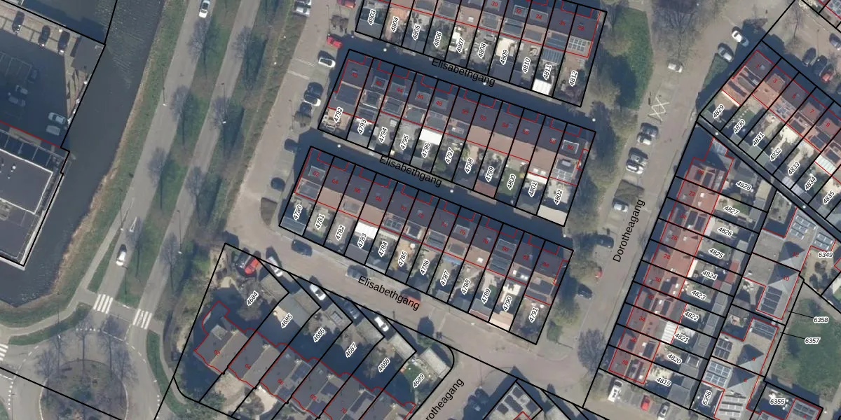 Gebruik de zoekbalk of klik op een perceel voor informatie over de adressen binnen dit perceel.