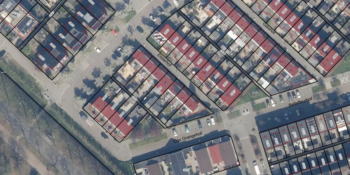 Gebruik de zoekbalk of klik op een perceel voor informatie over de adressen binnen dit perceel.