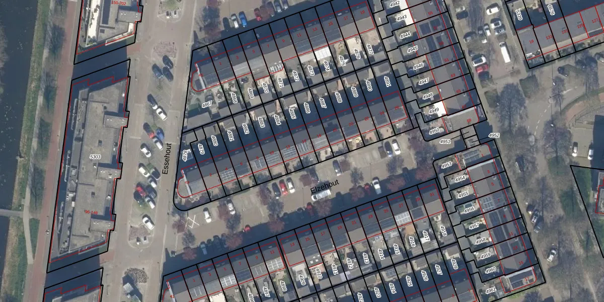 Gebruik de zoekbalk of klik op een perceel voor informatie over de adressen binnen dit perceel.