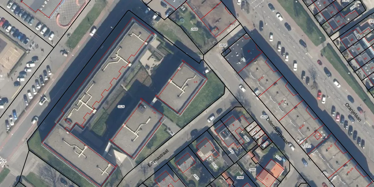 Het perceel waarop Emmastraat 3 staat heeft een oppervlakte van 5402 m². Dit is een zeer groot perceel. De perceeloppervlakte wordt geregistreerd door het Kadaster. Gedetailleerde informatie over de maten van dit perceel kunt u vinden in het rapport Kadastrale kaart met maatvoering van Emmastraat 3.