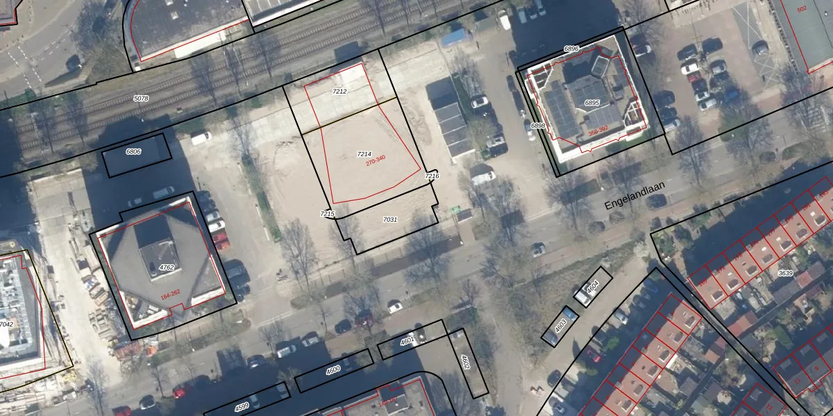 Het perceel waarop Engelandlaan 272-E staat heeft een oppervlakte van 217 m². Dit is een middelgroot perceel. De perceeloppervlakte wordt geregistreerd door het Kadaster. Gedetailleerde informatie over de maten van dit perceel kunt u vinden in het rapport Kadastrale kaart met maatvoering van Engelandlaan 272-E.