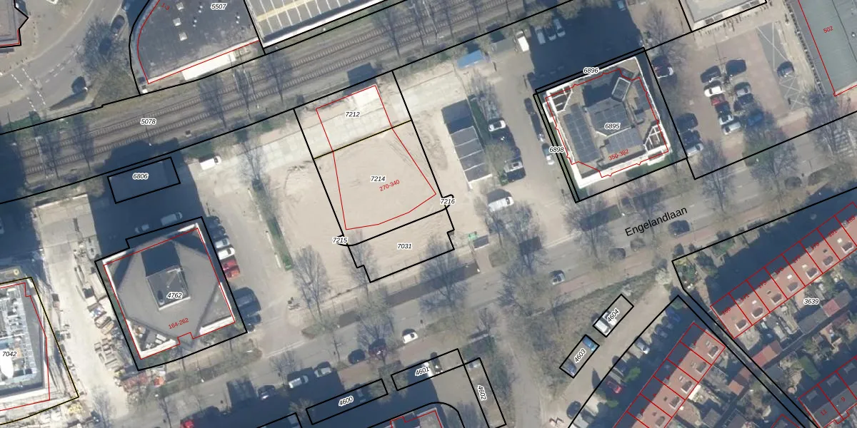 Het perceel waarop Engelandlaan 294-D staat heeft een oppervlakte van 534 m². Dit is een groot perceel. De perceeloppervlakte wordt geregistreerd door het Kadaster. Gedetailleerde informatie over de maten van dit perceel kunt u vinden in het rapport Kadastrale kaart met maatvoering van Engelandlaan 294-D.
