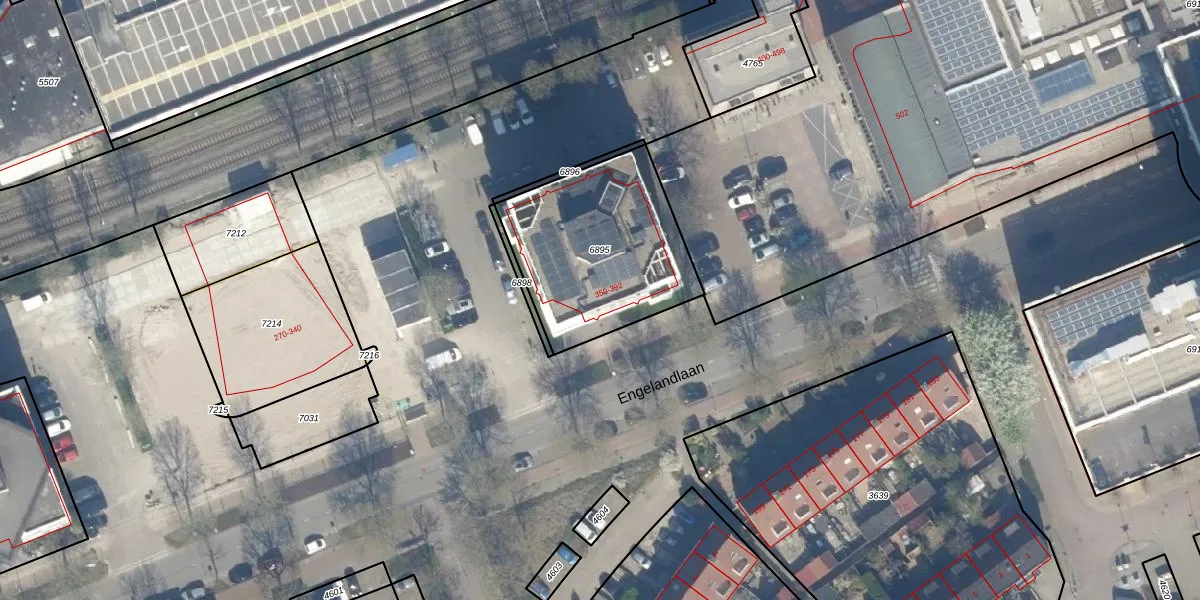 Het perceel waarop Engelandlaan 362 staat heeft een oppervlakte van 715 m². Dit is een groot perceel. De perceeloppervlakte wordt geregistreerd door het Kadaster. Gedetailleerde informatie over de maten van dit perceel kunt u vinden in het rapport Kadastrale kaart met maatvoering van Engelandlaan 362.