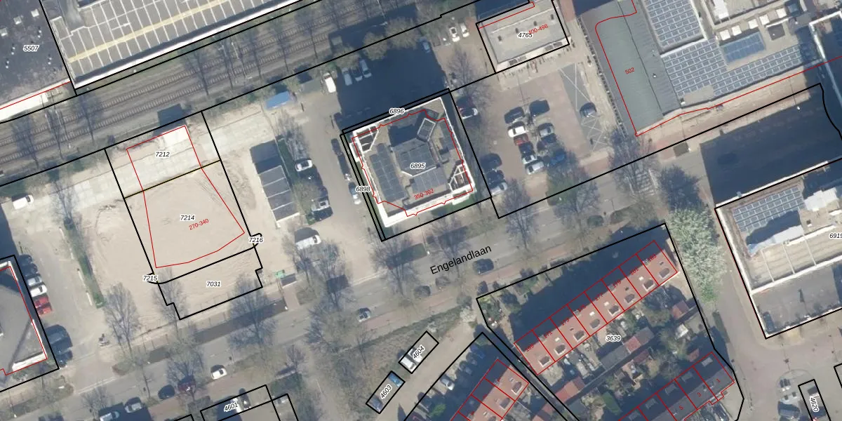 Het perceel waarop Engelandlaan 390 staat heeft een oppervlakte van 715 m². Dit is een groot perceel. De perceeloppervlakte wordt geregistreerd door het Kadaster. Gedetailleerde informatie over de maten van dit perceel kunt u vinden in het rapport Kadastrale kaart met maatvoering van Engelandlaan 390.