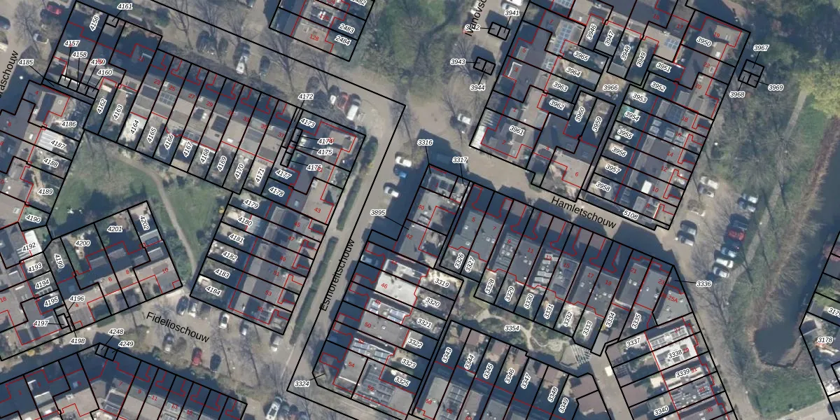 Gebruik de zoekbalk of klik op een perceel voor informatie over de adressen binnen dit perceel.