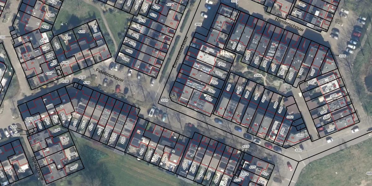 Het perceel waarop Esmoreitschouw 54 staat heeft een oppervlakte van 112 m². Dit is een middelgroot perceel. De perceeloppervlakte wordt geregistreerd door het Kadaster. Gedetailleerde informatie over de maten van dit perceel kunt u vinden in het rapport Kadastrale kaart met maatvoering van Esmoreitschouw 54.