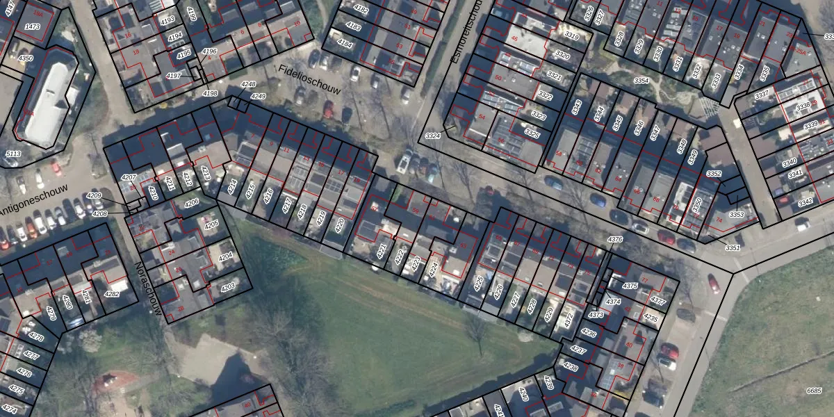 Het perceel waarop Esmoreitschouw 59 staat heeft een oppervlakte van 128 m². Dit is een middelgroot perceel. De perceeloppervlakte wordt geregistreerd door het Kadaster. Gedetailleerde informatie over de maten van dit perceel kunt u vinden in het rapport Kadastrale kaart met maatvoering van Esmoreitschouw 59.