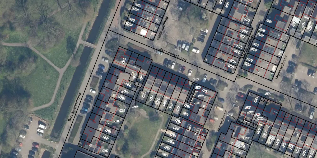Het perceel waarop Esmoreitschouw 7 staat heeft een oppervlakte van 111 m². Dit is een middelgroot perceel. De perceeloppervlakte wordt geregistreerd door het Kadaster. Gedetailleerde informatie over de maten van dit perceel kunt u vinden in het rapport Kadastrale kaart met maatvoering van Esmoreitschouw 7.