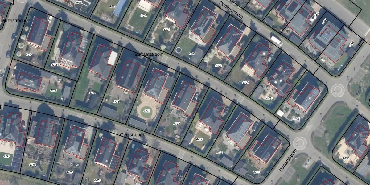 Het perceel waarop Eufraatstroom 27 staat heeft een oppervlakte van 598 m². Dit is een groot perceel. De perceeloppervlakte wordt geregistreerd door het Kadaster. Gedetailleerde informatie over de maten van dit perceel kunt u vinden in het rapport Kadastrale kaart met maatvoering van Eufraatstroom 27.
