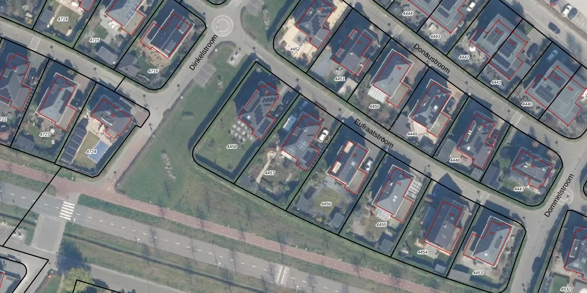 Het perceel waarop Eufraatstroom 37 staat heeft een oppervlakte van 692 m². Dit is een groot perceel. De perceeloppervlakte wordt geregistreerd door het Kadaster. Gedetailleerde informatie over de maten van dit perceel kunt u vinden in het rapport Kadastrale kaart met maatvoering van Eufraatstroom 37.