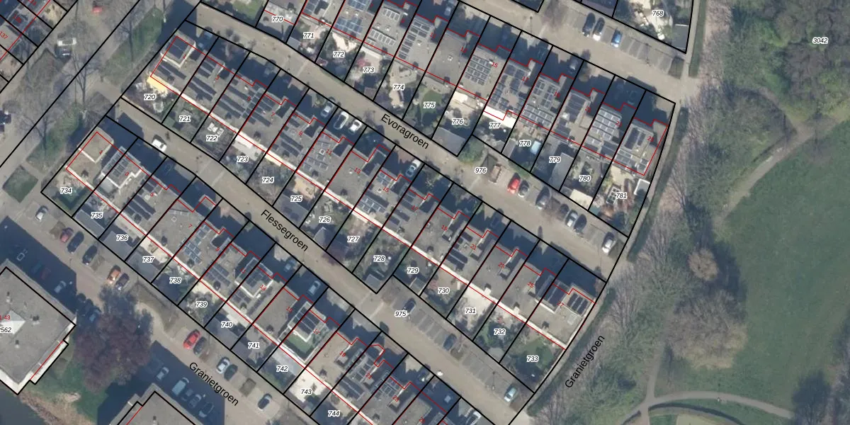 Het perceel waarop Evoragroen 17 staat heeft een oppervlakte van 254 m². Dit is een middelgroot perceel. De perceeloppervlakte wordt geregistreerd door het Kadaster. Gedetailleerde informatie over de maten van dit perceel kunt u vinden in het rapport Kadastrale kaart met maatvoering van Evoragroen 17.