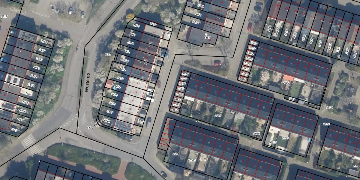 Gebruik de zoekbalk of klik op een perceel voor informatie over de adressen binnen dit perceel.