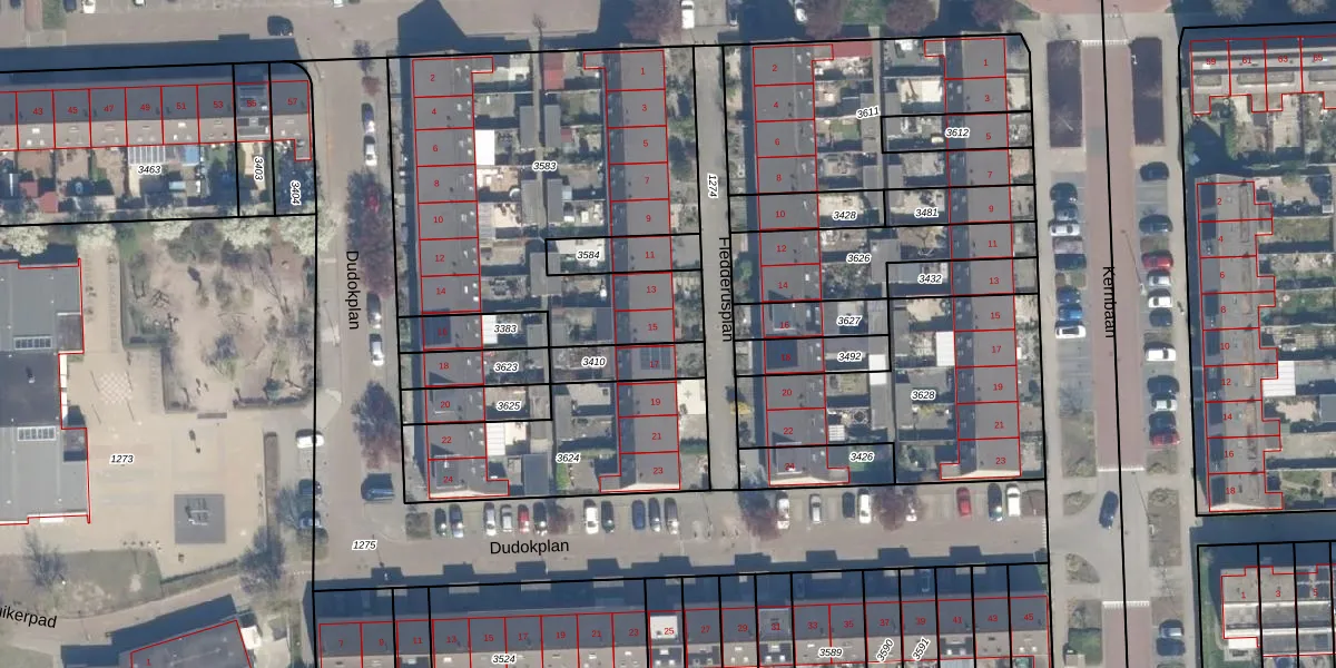 Het perceel waarop Fledderusplan 15 staat heeft een oppervlakte van 1761 m². Dit is een zeer groot perceel. De perceeloppervlakte wordt geregistreerd door het Kadaster. Gedetailleerde informatie over de maten van dit perceel kunt u vinden in het rapport Kadastrale kaart met maatvoering van Fledderusplan 15.