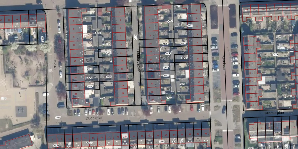 Gebruik de zoekbalk of klik op een perceel voor informatie over de adressen binnen dit perceel.