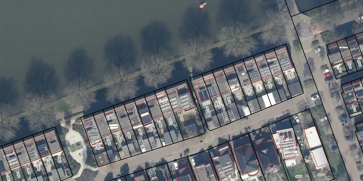 Gebruik de zoekbalk of klik op een perceel voor informatie over de adressen binnen dit perceel.
