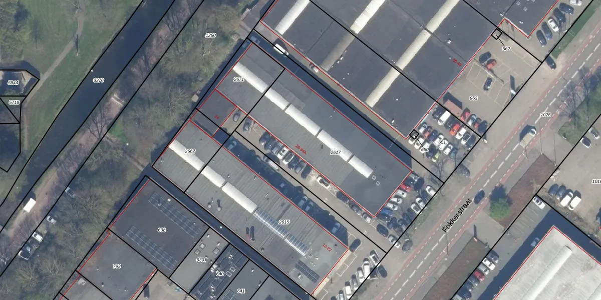 Het perceel waarop Fokkerstraat 28 staat heeft een oppervlakte van 2012 m². Dit is een zeer groot perceel. De perceeloppervlakte wordt geregistreerd door het Kadaster. Gedetailleerde informatie over de maten van dit perceel kunt u vinden in het rapport Kadastrale kaart met maatvoering van Fokkerstraat 28.