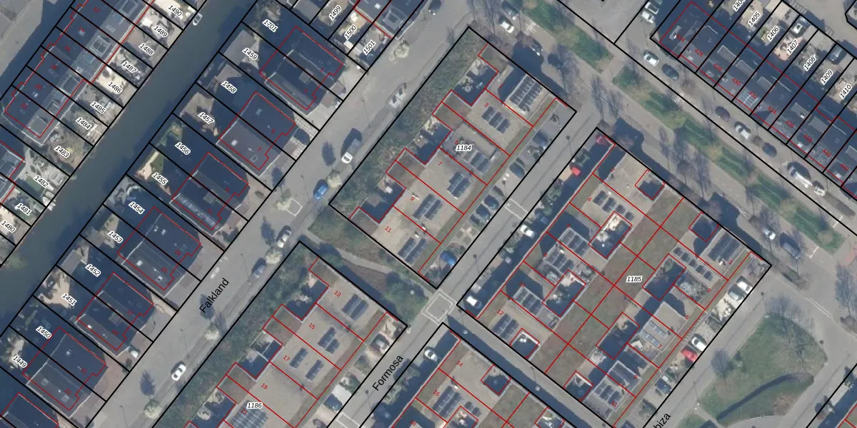 Het perceel waarop Formosa 9 staat heeft een oppervlakte van 1687 m². Dit is een zeer groot perceel. De perceeloppervlakte wordt geregistreerd door het Kadaster. Gedetailleerde informatie over de maten van dit perceel kunt u vinden in het rapport Kadastrale kaart met maatvoering van Formosa 9.