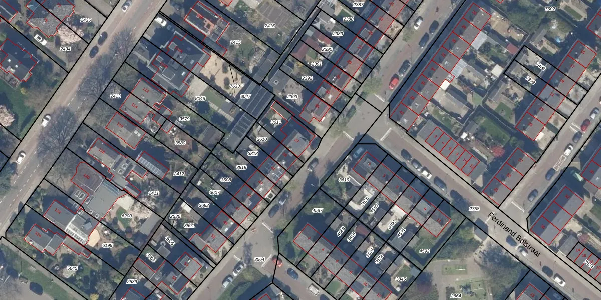 Gebruik de zoekbalk of klik op een perceel voor informatie over de adressen binnen dit perceel.