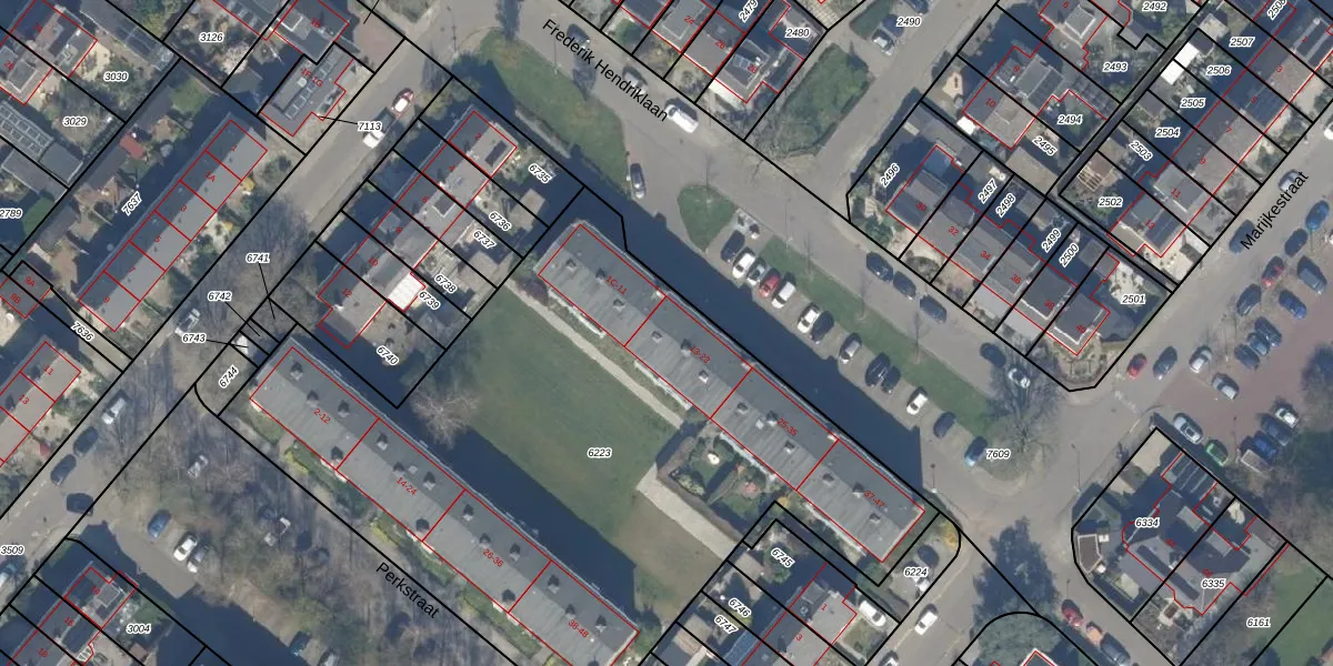 Het perceel waarop Frederik Hendriklaan 17 staat heeft een oppervlakte van 3766 m². Dit is een zeer groot perceel. De perceeloppervlakte wordt geregistreerd door het Kadaster. Gedetailleerde informatie over de maten van dit perceel kunt u vinden in het rapport Kadastrale kaart met maatvoering van Frederik Hendriklaan 17.