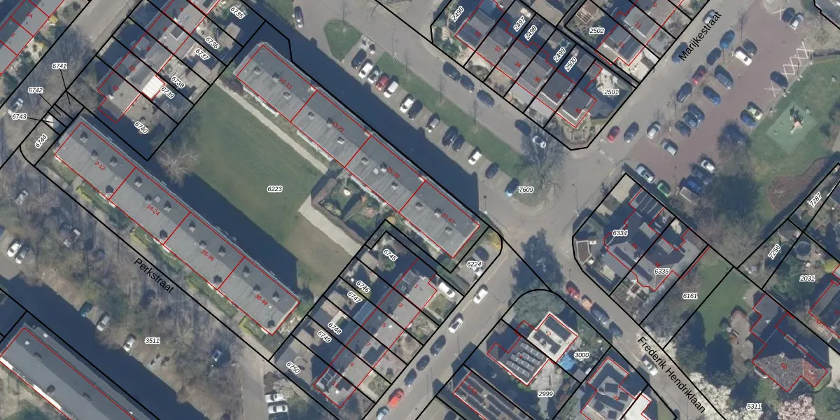 Het perceel waarop Frederik Hendriklaan 45 staat heeft een oppervlakte van 3766 m². Dit is een zeer groot perceel. De perceeloppervlakte wordt geregistreerd door het Kadaster. Gedetailleerde informatie over de maten van dit perceel kunt u vinden in het rapport Kadastrale kaart met maatvoering van Frederik Hendriklaan 45.
