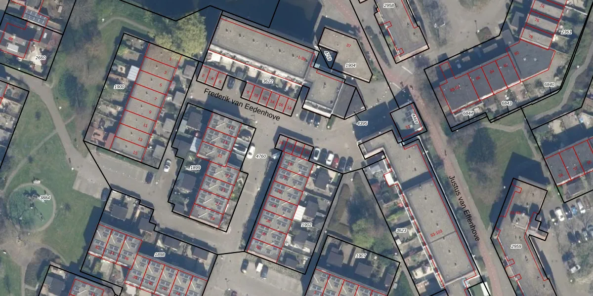 Het perceel waarop Frederik van Eedenhove 22 staat heeft een oppervlakte van 854 m². Dit is een groot perceel. De perceeloppervlakte wordt geregistreerd door het Kadaster. Gedetailleerde informatie over de maten van dit perceel kunt u vinden in het rapport Kadastrale kaart met maatvoering van Frederik van Eedenhove 22.