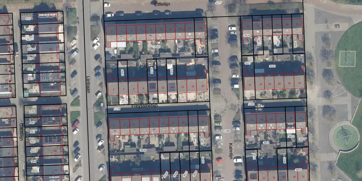 Het perceel waarop Freyssinetlijn 16 staat heeft een oppervlakte van 2089 m². Dit is een zeer groot perceel. De perceeloppervlakte wordt geregistreerd door het Kadaster. Gedetailleerde informatie over de maten van dit perceel kunt u vinden in het rapport Kadastrale kaart met maatvoering van Freyssinetlijn 16.