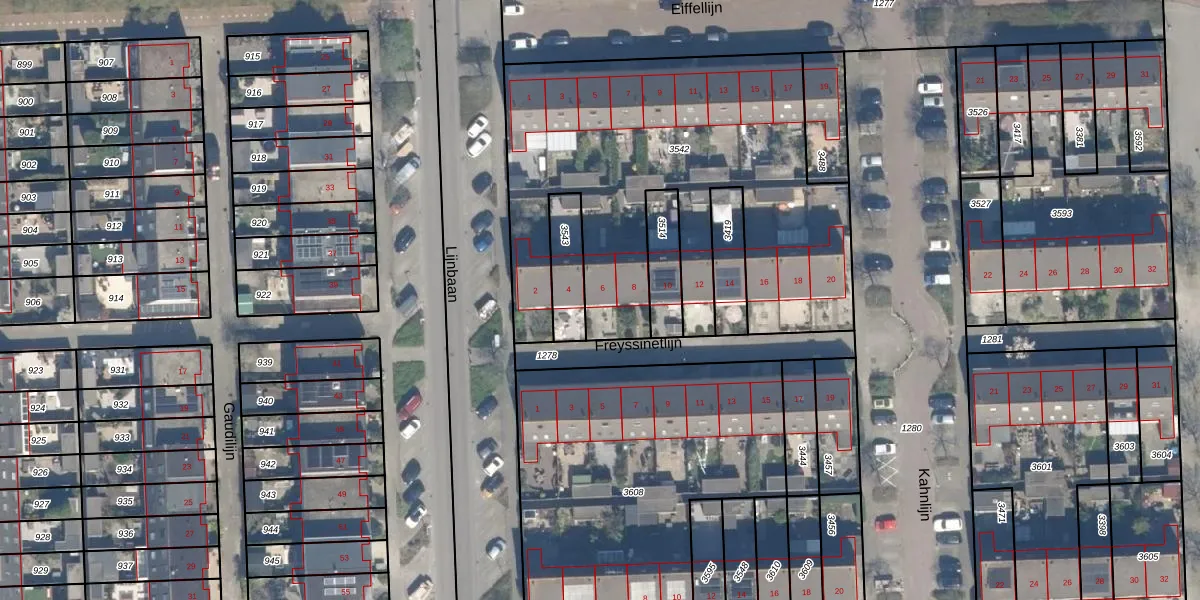 Het perceel waarop Freyssinetlijn 6 staat heeft een oppervlakte van 2089 m². Dit is een zeer groot perceel. De perceeloppervlakte wordt geregistreerd door het Kadaster. Gedetailleerde informatie over de maten van dit perceel kunt u vinden in het rapport Kadastrale kaart met maatvoering van Freyssinetlijn 6.