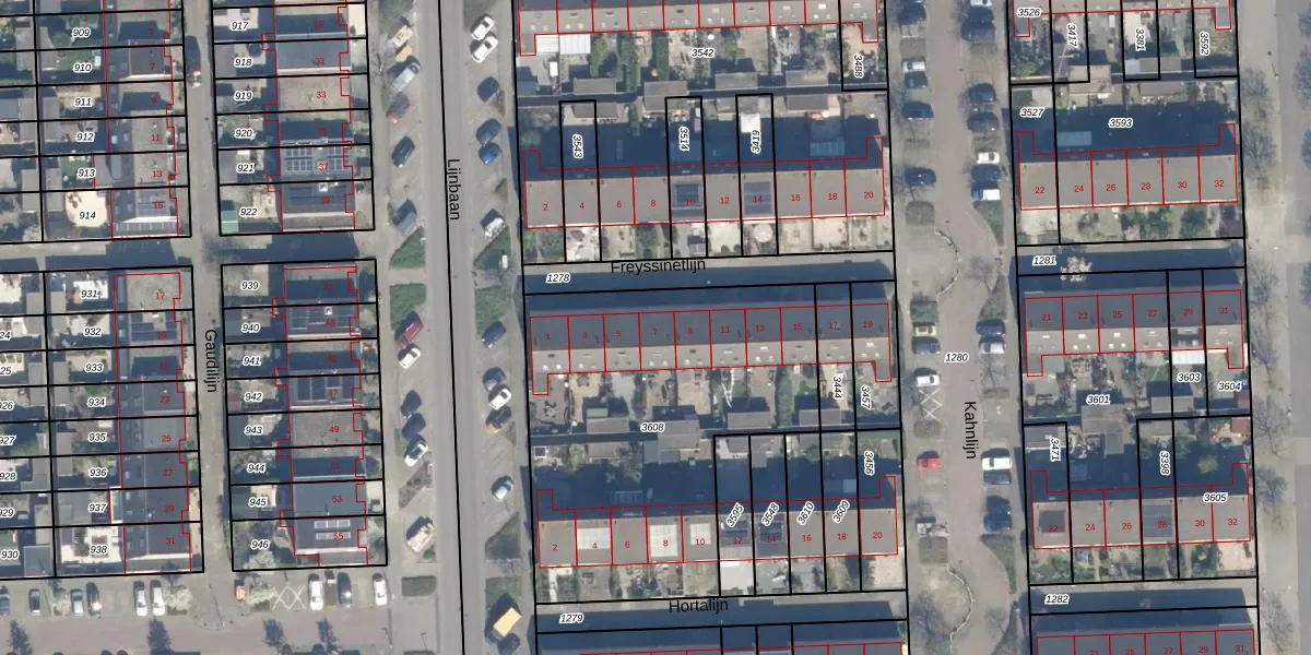 Het perceel waarop Freyssinetlijn 7 staat heeft een oppervlakte van 1700 m². Dit is een zeer groot perceel. De perceeloppervlakte wordt geregistreerd door het Kadaster. Gedetailleerde informatie over de maten van dit perceel kunt u vinden in het rapport Kadastrale kaart met maatvoering van Freyssinetlijn 7.
