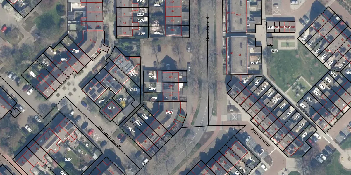 Gebruik de zoekbalk of klik op een perceel voor informatie over de adressen binnen dit perceel.