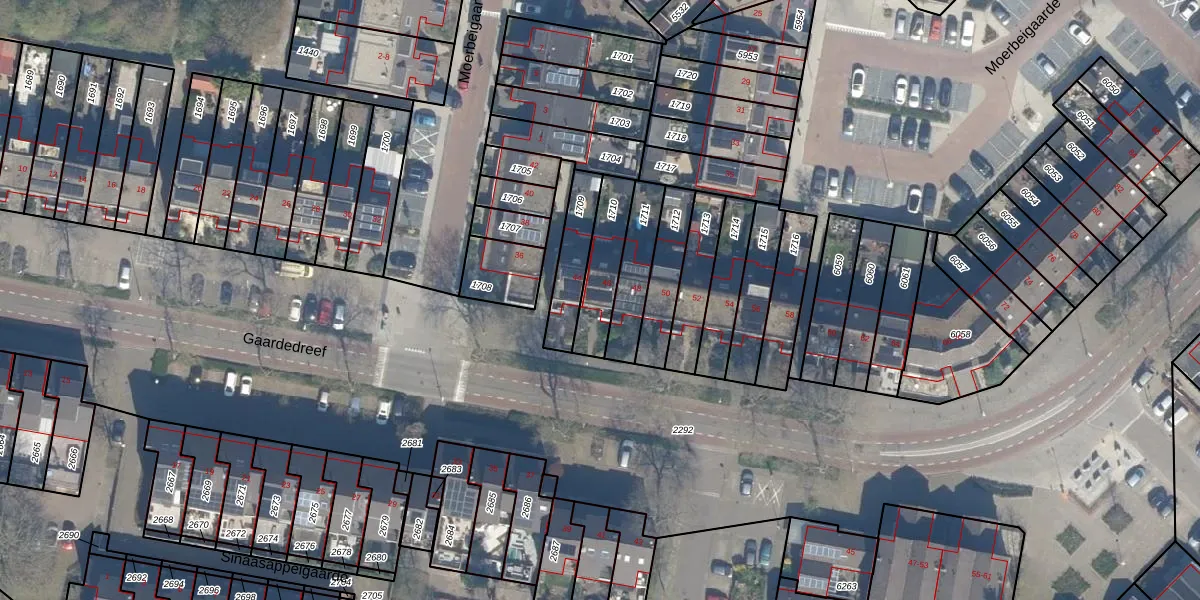 Gebruik de zoekbalk of klik op een perceel voor informatie over de adressen binnen dit perceel.
