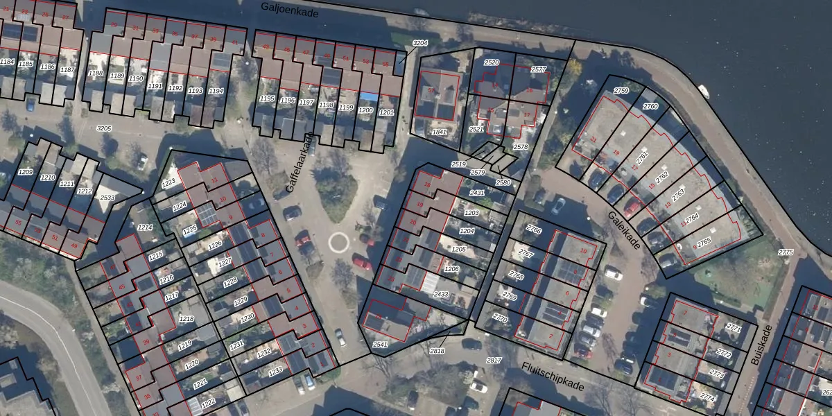 Het perceel waarop Gaffelaarkade 19 staat heeft een oppervlakte van 119 m². Dit is een middelgroot perceel. De perceeloppervlakte wordt geregistreerd door het Kadaster. Gedetailleerde informatie over de maten van dit perceel kunt u vinden in het rapport Kadastrale kaart met maatvoering van Gaffelaarkade 19.