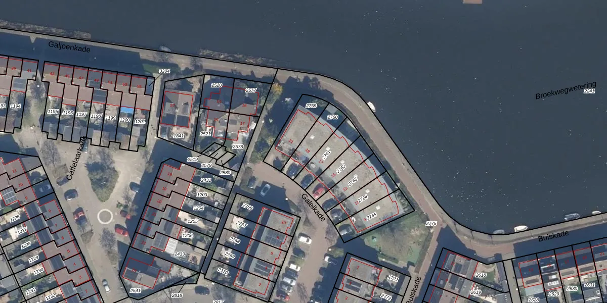 Het perceel waarop Galeikade 19 staat heeft een oppervlakte van 174 m². Dit is een middelgroot perceel. De perceeloppervlakte wordt geregistreerd door het Kadaster. Gedetailleerde informatie over de maten van dit perceel kunt u vinden in het rapport Kadastrale kaart met maatvoering van Galeikade 19.