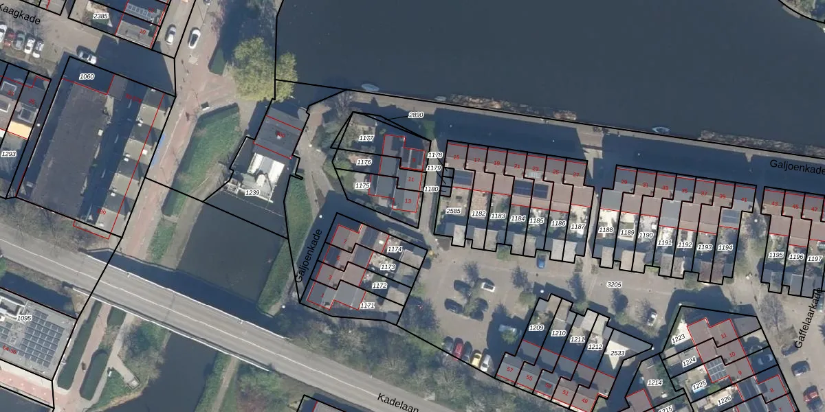 Het perceel waarop Galjoenkade 13 staat heeft een oppervlakte van 175 m². Dit is een middelgroot perceel. De perceeloppervlakte wordt geregistreerd door het Kadaster. Gedetailleerde informatie over de maten van dit perceel kunt u vinden in het rapport Kadastrale kaart met maatvoering van Galjoenkade 13.